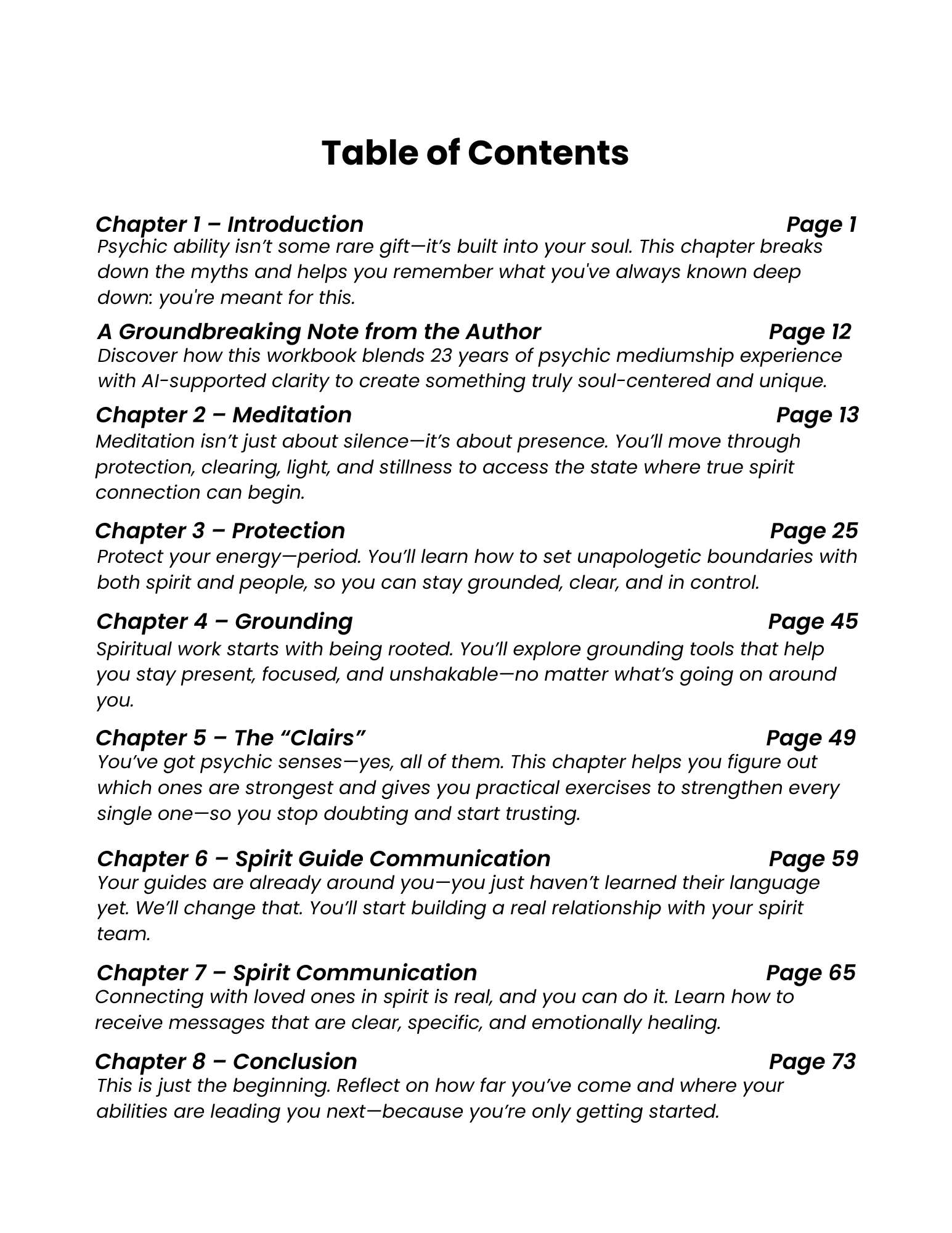 This workbook is intentionally concise — every page delivers real tools, clear direction, and zero fluff, so you can start trusting your gifts right away.
